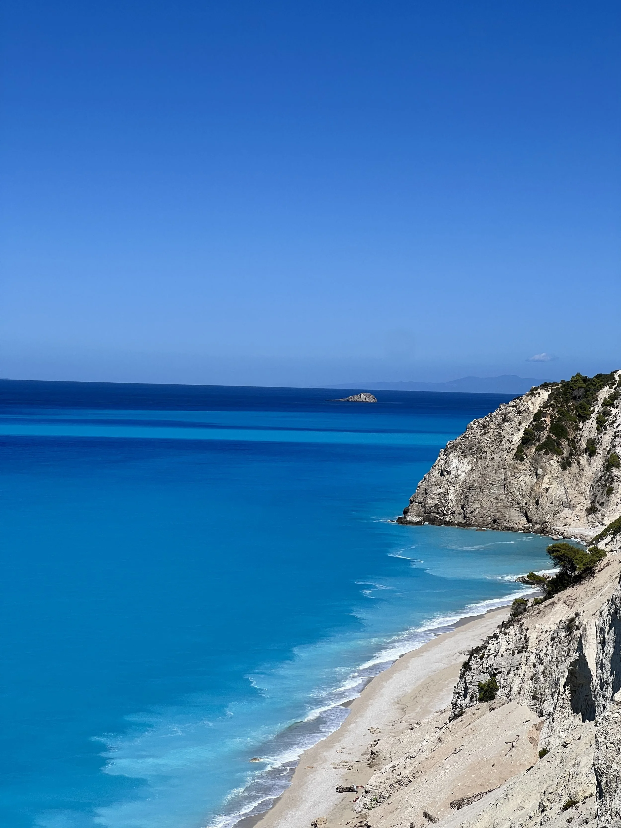 Hike to Egremni beach – getting here is high effort, high reward! The road leading to this beach is closed to cars. So, to access it you must park at the top of the hill and walk until you hit the 400 steps that take you down to the shore. Not too bad on the descent, but definitely an experience on the way back up! But it’s so worth it. The blue of the sea here is beyond comparison. Plus, its difficulty to access means the beach is never crowded.