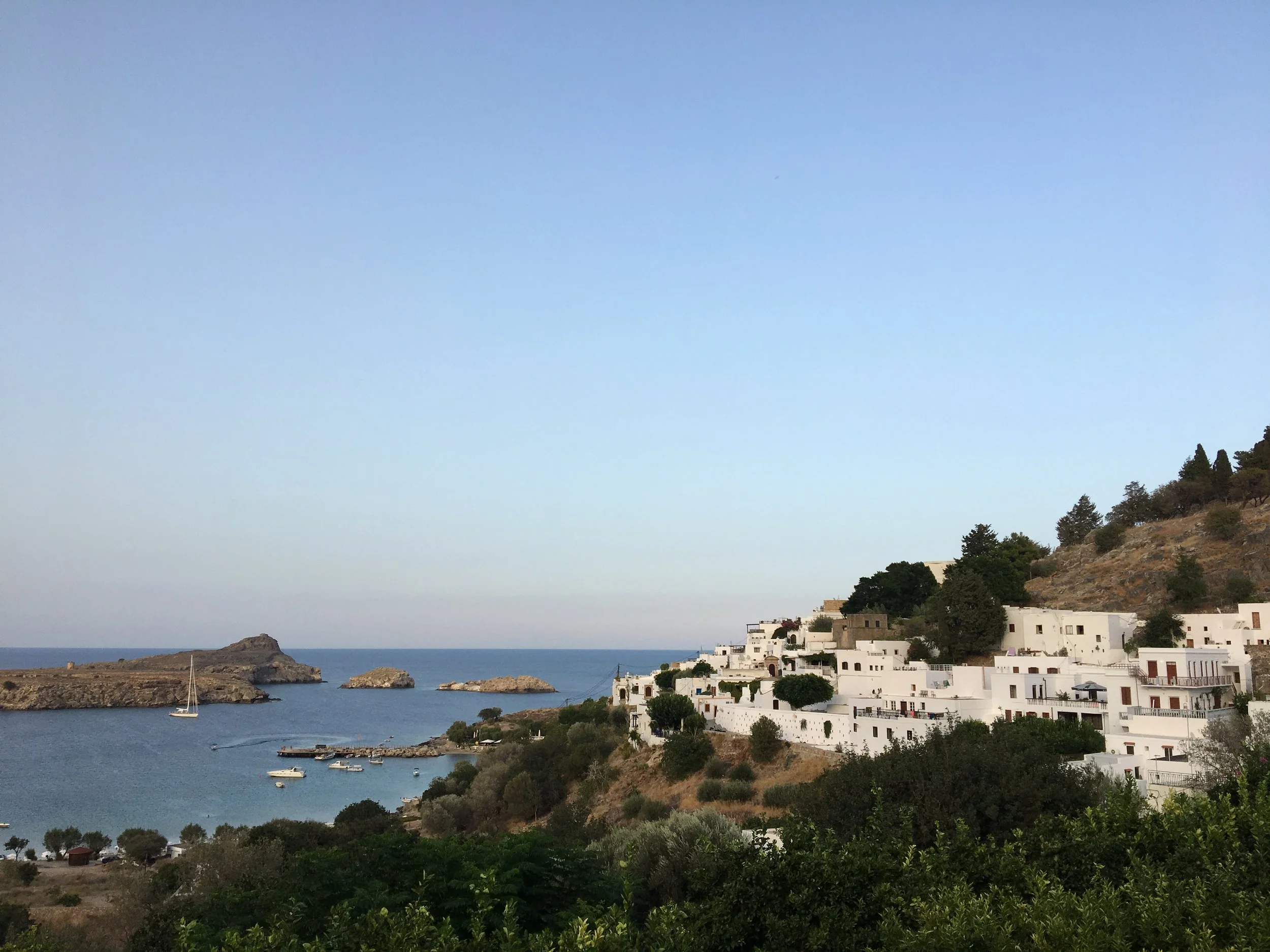 Dine at a rooftop restaurant – Lindos boasts several rooftop restaurants, with panoramic views of the island. We treated ourselves to a sunset dinner every evening.